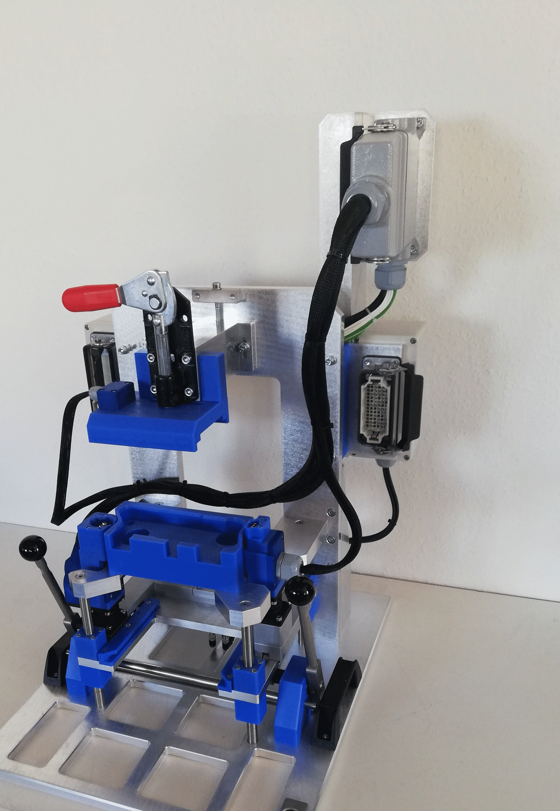 Nous fabriquons également des boîtiers sur lesquels un adaptateur de contact peut être monté directement, dissimulant ainsi l'installation électrique de l'adaptateur à l'intérieur du boîtier. Des interfaces latérales ou des entrées de câbles peuvent être intégrées individuellement selon les besoins du client.